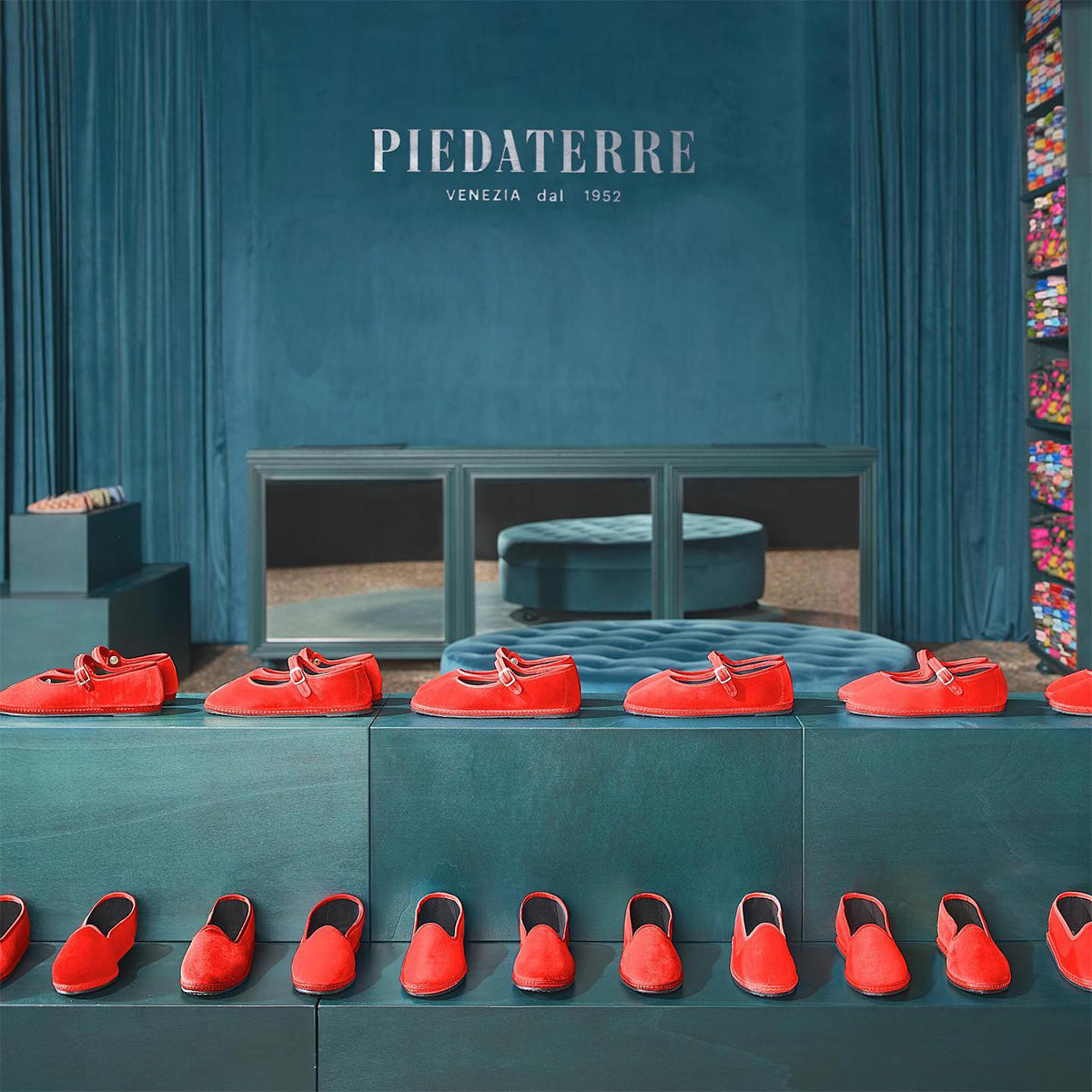 Piedàterre ha due negozi nel centro di Venezia: la storica bottega vicino al Ponte di Rialto (San Polo) e il flagship store in Campo Santo Stefano (San Marco).