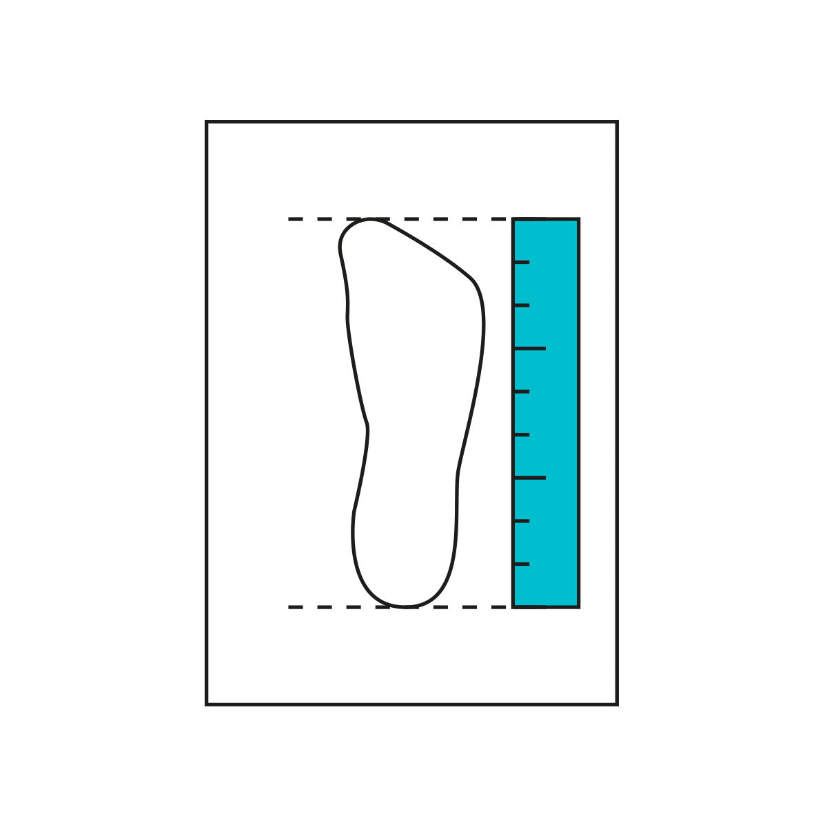 Traccia il contorno del piede e segna la punta del dito più lungo e il tallone